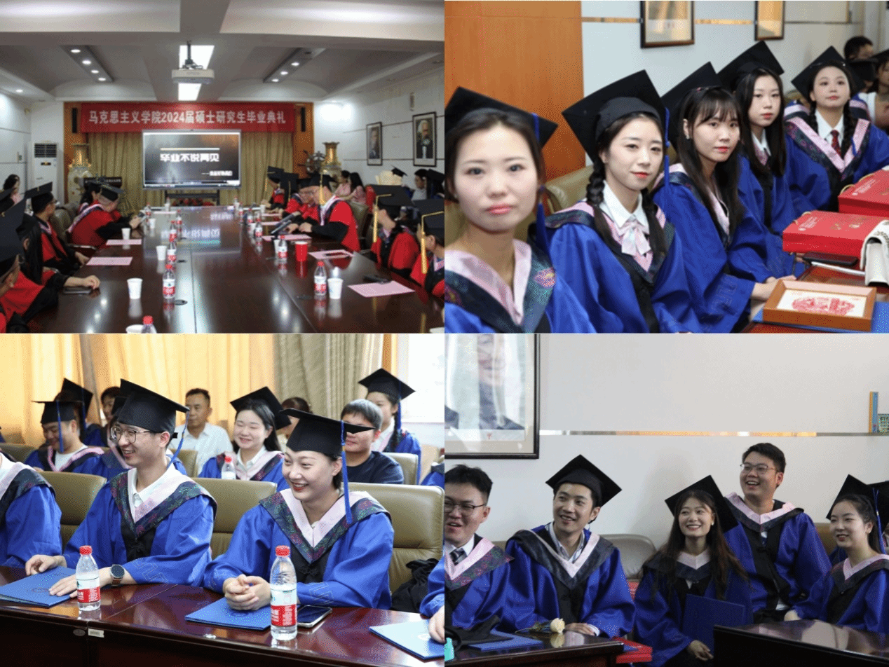 肖述剑宣读了超碰97在线观看2024届全体毕业研究生名单及优秀毕业生表彰决定,并为毕业生颁发毕业证书、学位证书、拨穗正冠及赠送毕业纪念品。他用习近平总书记的话深情寄语同学们:“大道至简,实干为要。”希望未来无论是在工作还是学习中,马院学子都能够秉持实干精神,将所学理论知识转化为实际行动,以实干创造实绩,以实绩书写人生华章,做一个对社会、对国家、对人民有贡献、有价值的优秀青年。