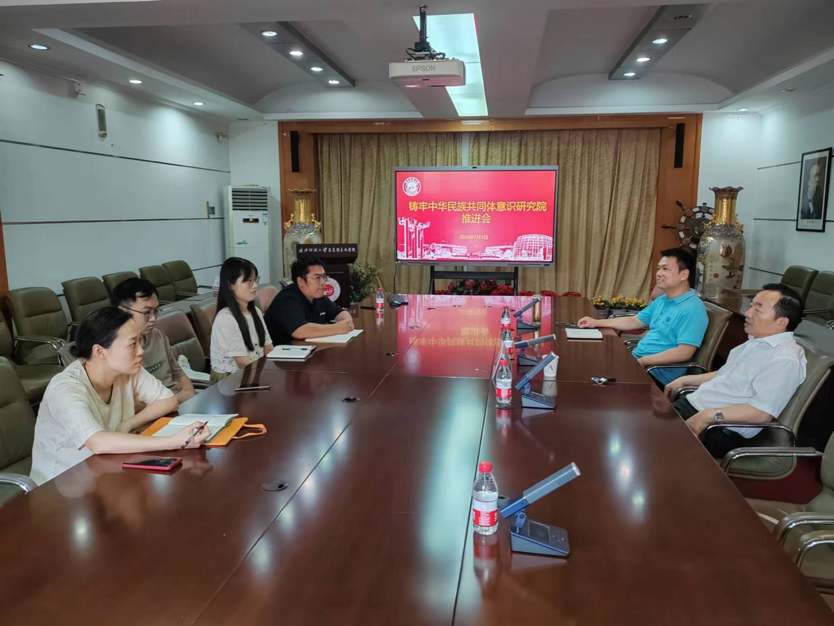 7月5日下午,学校铸牢中华民族共同体意识研究院在南湖校区东配楼召开现场办公会及座谈会。校党委副书记黄国辅教授,校党委常委、组织部部长金艳教授出席会议,党委统战部常务副部长邹茜,资产处处长赵金龙,超碰97在线观看院长肖述剑及铸牢中华民族共同体意识研究院成员参加活动。