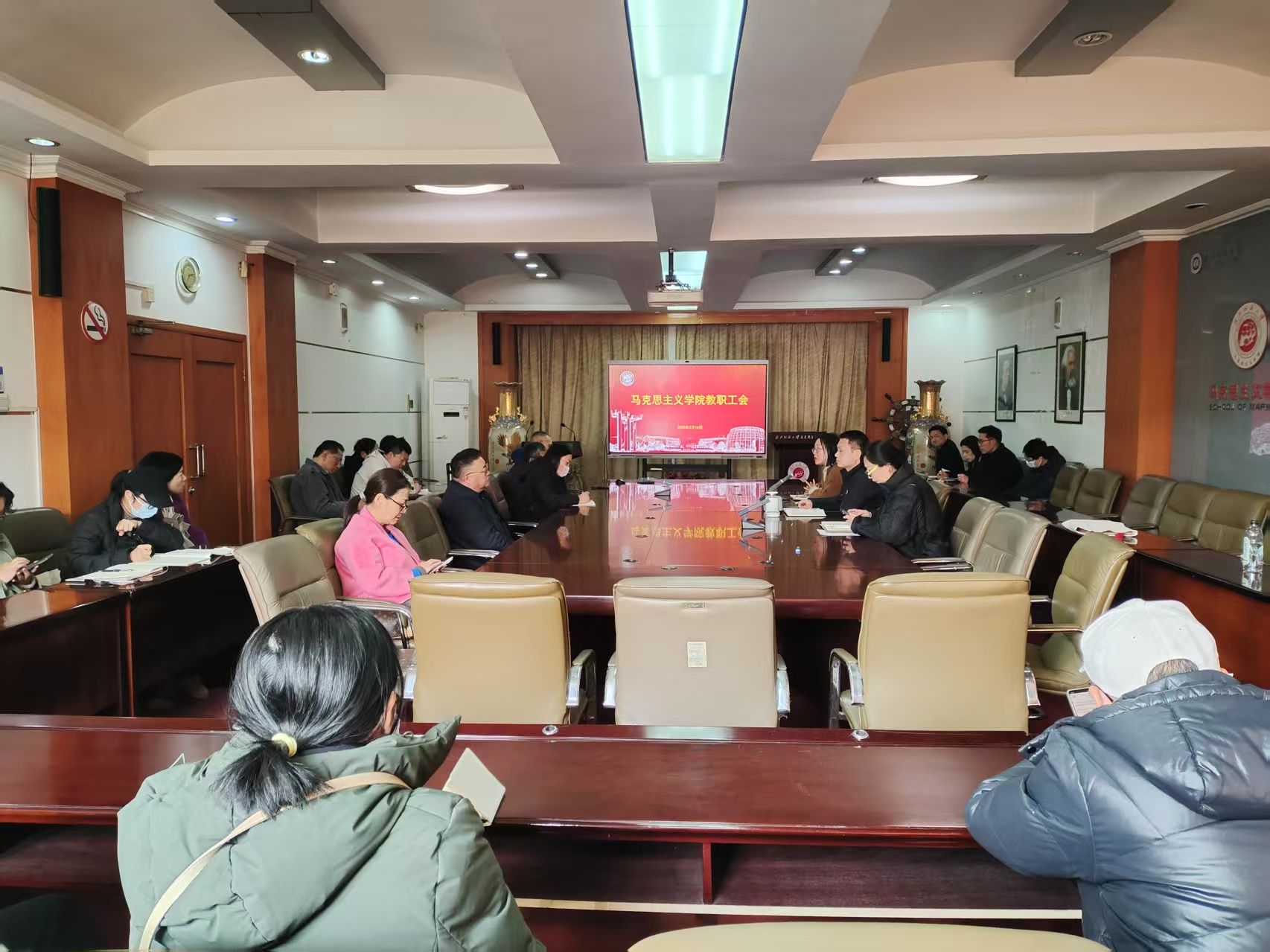 2025年2月16日下午,我院在东配楼201会议室召开春季学期开学教职工会暨政治理论学习会。学院全体教职工参会,会议由院长肖述剑主持。