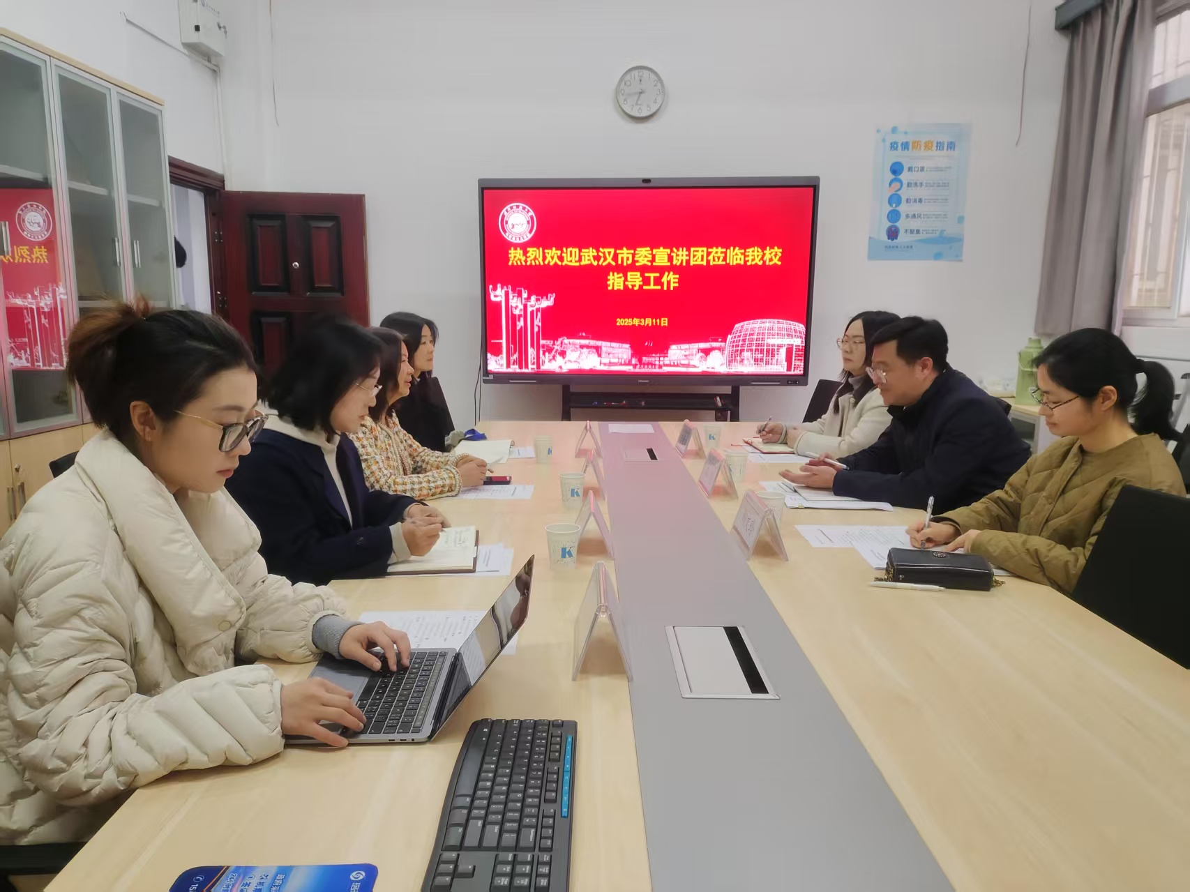 为深入贯彻落实党的二十大精神及党的二十届二中、三中全会精神,推动党的创新理论“飞入寻常百姓家”,3月11日下午,武汉市委讲师团主任李想、副主任陶文玲、理论辅导科专员李馨瑶一行3人来我校调研“武汉市理论热点面对面实践基地”建设情况,共商实践基地建设深化路径。学校宣传部、超碰97在线观看相关负责人陪同调研,并进行了深入的座谈交流。校党委宣传部常务副部长、新闻中心主任刘戈主持座谈会。