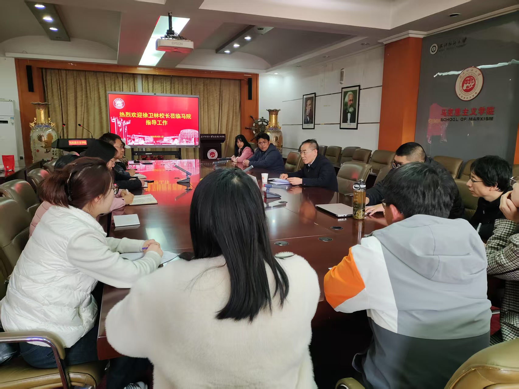 徐卫林认真听取汇报后,对马院全体教师的辛勤付出和积极努力表示肯定,称赞学院班子团结、工作扎实、思路清晰,全体教师士气高昂、干劲十足,为申博工作打下了坚实基础。随后,他与班子成员和教师代表就学科建设、人才引进、条件保障等方面内容进行了交流,讨论重难点问题,并提出指导性意见。