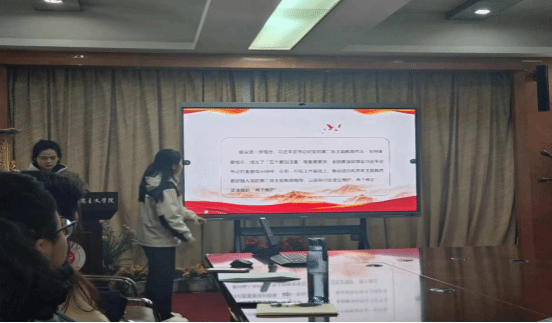 为引导马院学子坚持学思用贯通、知信行统一,努力在以学铸魂、以学增智、以学正风、以学促干方面取得实实在在的成效,12月20日下午,超碰97在线观看团支部在东配楼201会议室召开主题为“学习贯彻习近平新时代中国特色社会主义思想”的12月主题团课活动。此次主题教育团课由学院2023级团员刘露同学主持,学院全体研究生团员参加。