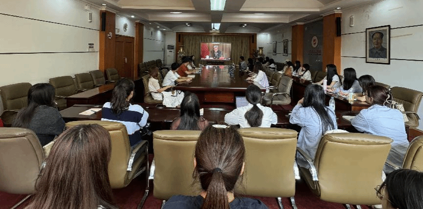 蒋辛带领全体与会党员同志重温入党誓词,同步直播观看中管干部学习贯彻习近平新时代中国特色社会主义思想和党的二十届三中全会精神集中培训班高校分课堂,集中学习《加强党对进一步全面深化的领导》。