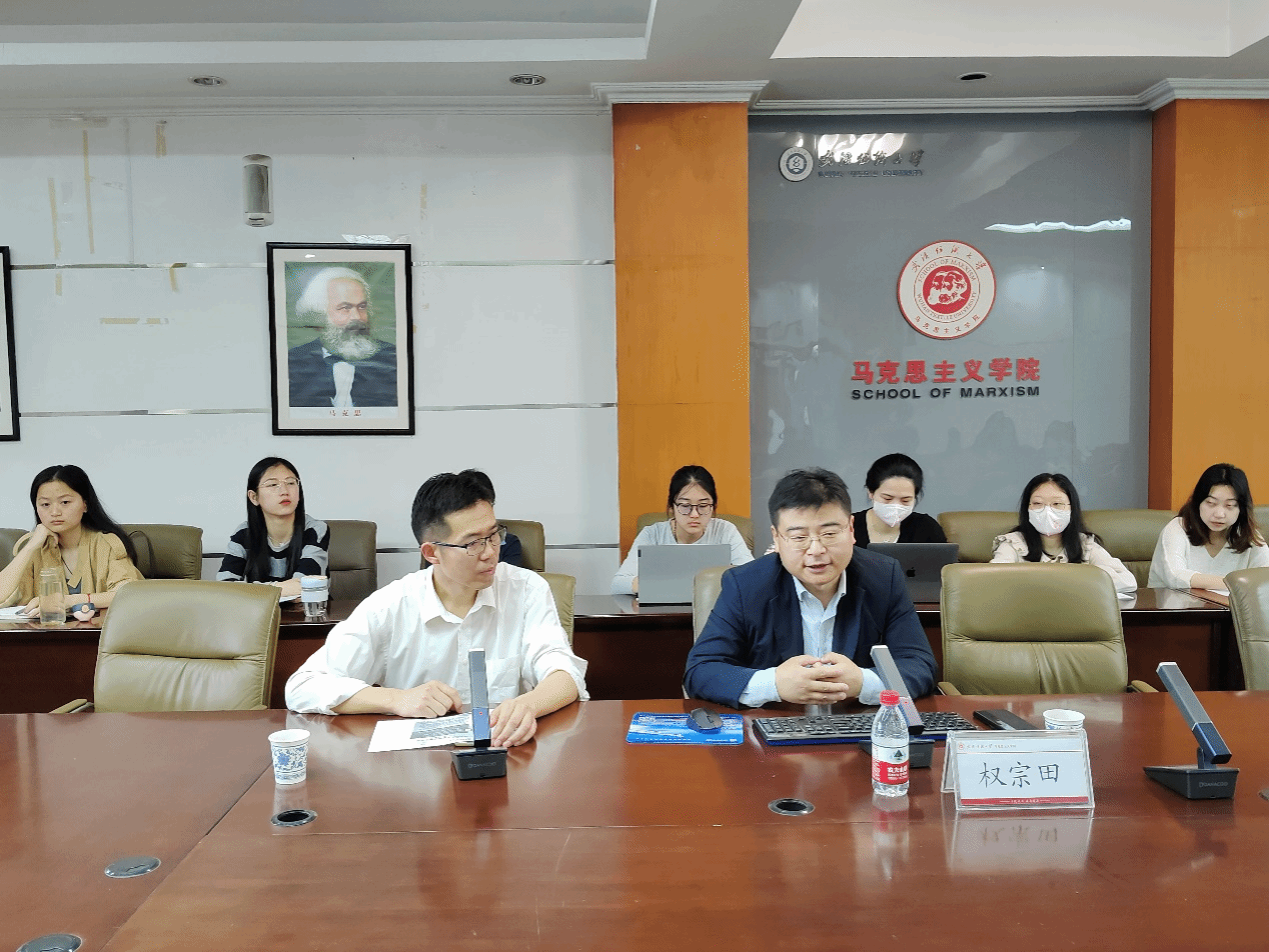 王海燕代表全体师生向权宗田教授的授课表示感谢。他指出权宗田对《共产党宣言》的解读深入透彻、内容丰富,上接天线,下接地气,理论研究有深度,政治站位有高度,关照现实有温度,对于马院研究生学深悟透经典原著,做好马克思主义理论研究,具有很大的帮助和启示。他强调读好书才能写好论文,要先“读马”“懂马”才能“在马言马”,希望同学们加强对经典文献的学习研究,理论联系实际,在学懂弄通做实上下功夫,夯实理论基础,不断提高学术素养。