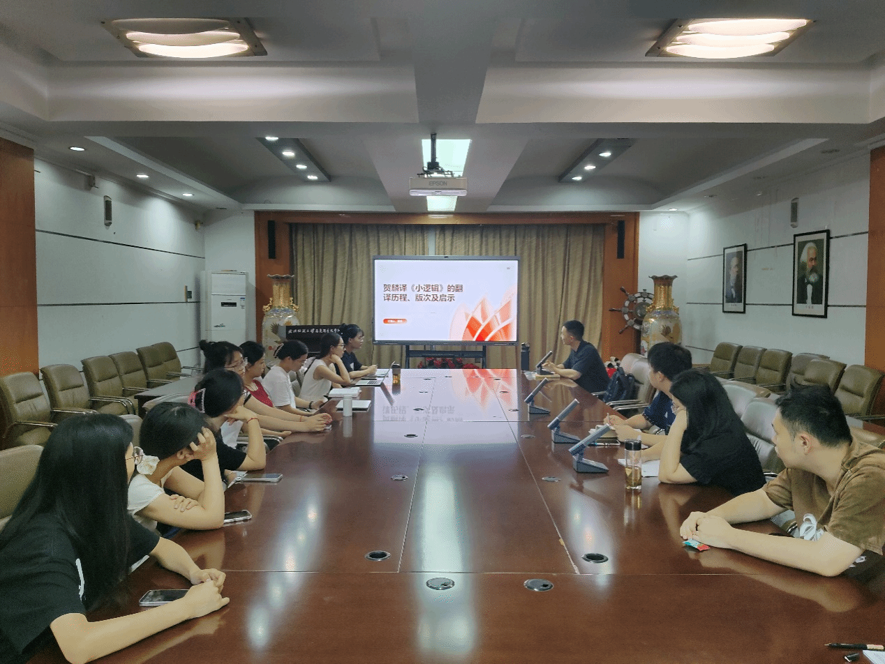 6月28日上午,超碰97在线观看2024年第7场研究生论坛在南湖校区东配楼201会议室举行。本次论坛邀请到武汉纺织大学超碰97在线观看讲师蒋辛博士以“贺麟译《小逻辑》的翻译历程、版次及启示”为主题作“经典著作导读”,超碰97在线观看全体在校研究生参会,在外实习研究生及2024级拟入学研究生通过线上同步参会。