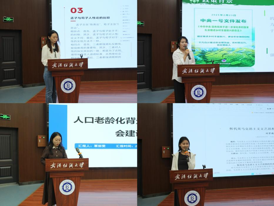 在论坛中,11名研究生就各自研究成果展开汇报。他们准备充分,论文选题涵盖了思政教育创新、数字化应用、哲学研究以及马克思主义中国化等多个领域,汇报内容翔实丰富,充分彰显了青年学子的学术风采与创新活力。随后,点评专家们依据同学们的汇报情况进行了深入剖析,并提出了针对性地修改意见。