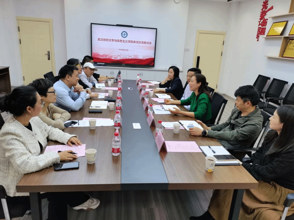 座谈会由湖工大马院院长丁银河教授主持。双方就学科建设、人才培养、教学实践、科研规划等问题展开讨论,并重点对思政实践教学的发展和落实进行了交流。肖述剑、刘艳对湖工大马院在各类思政实践教学竞赛中获得的成绩给予了祝贺和肯定,对我院思政实践教学的课程设置、教学管理、发展思路等也进行了介绍和相互探讨,双方均表示希望保持密切联系,加强合作交流,携手共同发展。
