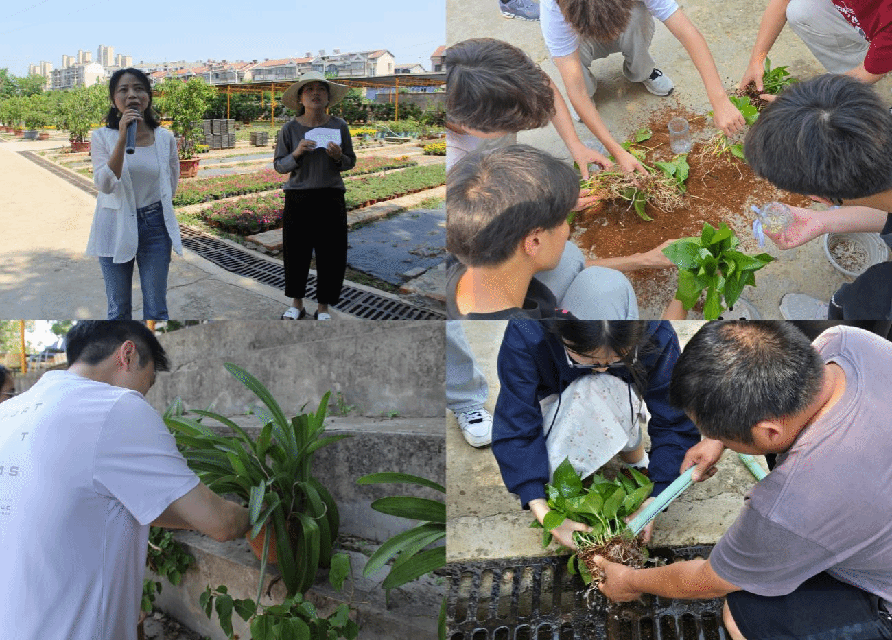 课程伊始,园林中心教师带领学生参观了校园花房,详细介绍了花房的布局与功能。花房占地约5000平方米,分为花卉摆放区、遮阴棚、蔬菜种植区等,全年培育草花3.5万盒,为校园绿化提供了丰富多样的花卉资源。学生们通过实地观察,了解了植物生长的环境需求与园林养护的基本知识。