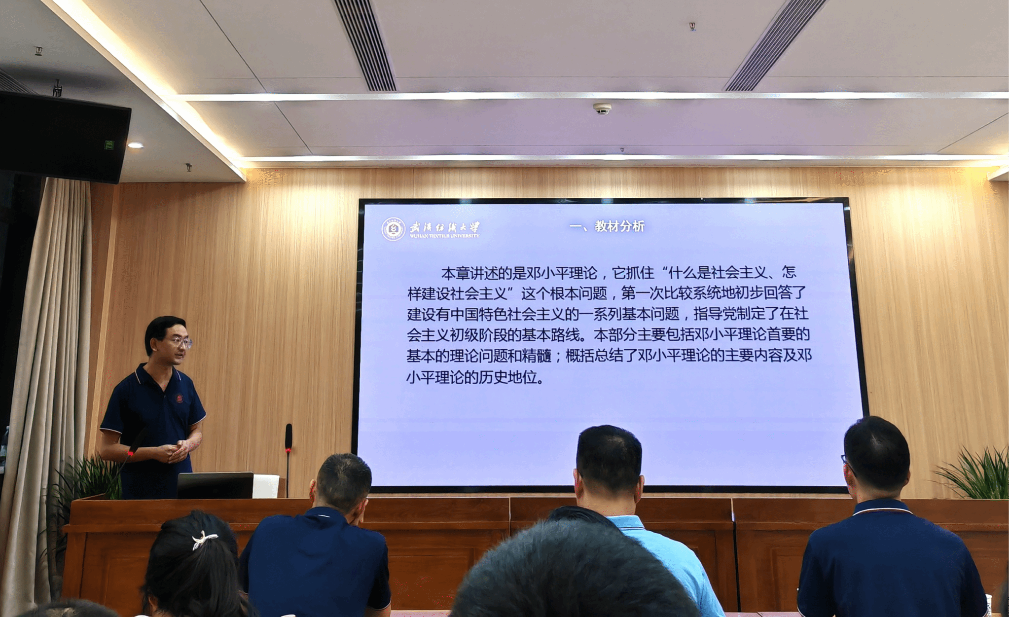 赛前,学院各教学部通过内部评比、推荐,6位优秀教师代表参加院赛。马克思主义基本原理教学部王欢老师以“实践与认识及其发展规律”为主题,通过理论讲授和具体案例分析,引导学生深刻理解实践与认识的辩证关系及其发展规律。中国近现代史纲要教学部吴文红老师从“为什么选择马克思主义”的视角出发,探讨了新文化运动和十月革命对中国马克思主义思潮产生的深远影响。思想道德与法治教学部陈慧老师围绕“担当复兴大任 成就时代新人”主题,通过案例讲解和小组讨论等多种教学方法,深入探讨了如何培养时代新人的使命感和责任感。毛泽东思想和中国特色社会主义理论体系概论教学部李静老师围绕“马克思主义中国化时代化的历史进程与理论成果”展开讲述,从多个角度阐述了马克思主义在中国化时代化过程中的重要理论贡献和发展趋势。习近平新时代中国特色社会主义思想概论教学部杨晶晶老师以“建设社会主义生态文明”为主题,通过多种教学方法,着重从情境教学和案例分析,引导学生深入思考人与自然和谐共生的重要性。毛泽东思想和中国特色社会主义理论体系概论教学部汪书路老师以《春天的故事》等红歌为课程导入,通过对这首歌创作的讲述引出中国改革开放的故事,进而引出邓小平理论这一课程内容。