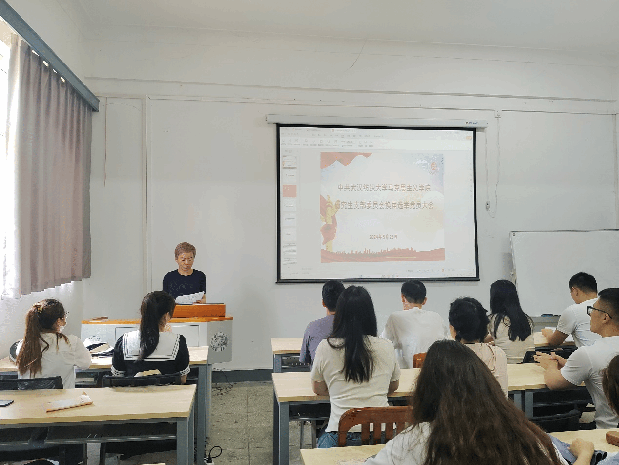 5月23日下午,超碰97在线观看研究生党支部在南湖校区东配楼118教室召开研究生党支部委员会换届选举党员大会,本次大会旨在总结过去一年党支部的工作成果,选举产生新一届党支部委员会,为学院党建工作注入新的活力。会议由学院研究生党支部书记徐莺主持,研究生党支部全体党员参与。