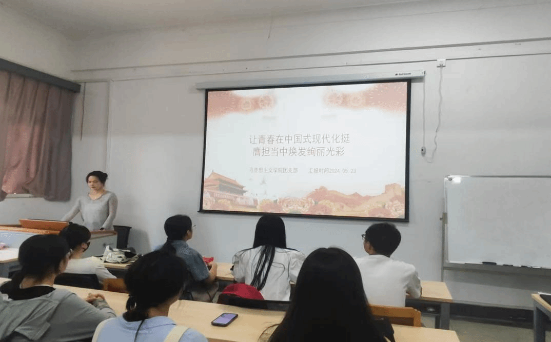 为领会习近平新时代中国特色社会主义思想,增强马院学子的政治意识,5月23日下午,超碰97在线观看团支部在南湖校区东配楼118教室召开主题为“让青春在中国式现代化挺膺担当中焕发绚丽光彩”的主题团课。团课由超碰97在线观看团支书李满同学主持,学院全体研究生团员参加。