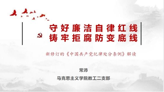 常沛以《守好廉洁自律红线 铸牢拒腐防变底线》为主题,结合新修订的《中国共产党纪律处分条例》向各位党员讲授党课。她首先强调要深刻认识修订《条例》的重要意义,深刻领悟“两个确立”的决定性意义,坚决做到“两个维护”的必然要求。其次,她从严明政治纪律和政治规矩、加强全方位管理和经常性监督、引导激励党员干部敢于担当和积极作为、坚持党性党风党纪一起抓、促进执纪执法贯通等五个方面准确把握《条例》修订的主旨要义。最后,她要求全体党员加强党纪学习教育,增强遵规守纪自觉,做好《条例》的贯彻执行。