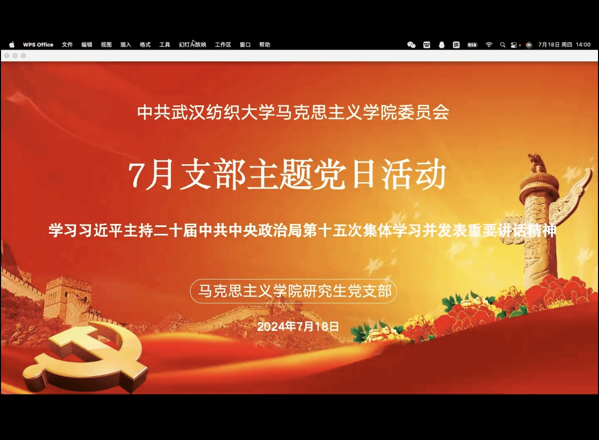7月18日下午,超碰97在线观看研究生党支部在腾讯会议开展了以全面从严治党为主题,重点学习习近平总书记在中央政治局第十五次集体学习时的重要讲话精神,开展7月主题党日活动。会议由学院研究生党支部副书记梁健佳同志主持,全体研究生党员参加。