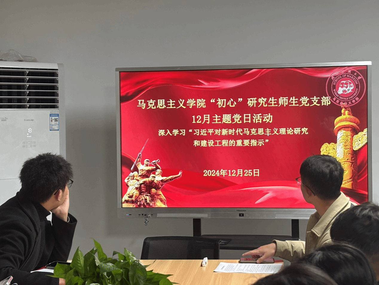 12月25日,超碰97在线观看“初心”研究生师生党支部组织开展了以“深入学习习近平新时代马克思主义理论研究和建设工程的重要指示”为主题的党日活动。会议由支部宣传委员汪灿灿同志主持,支部全体学生党员同志参加学习。