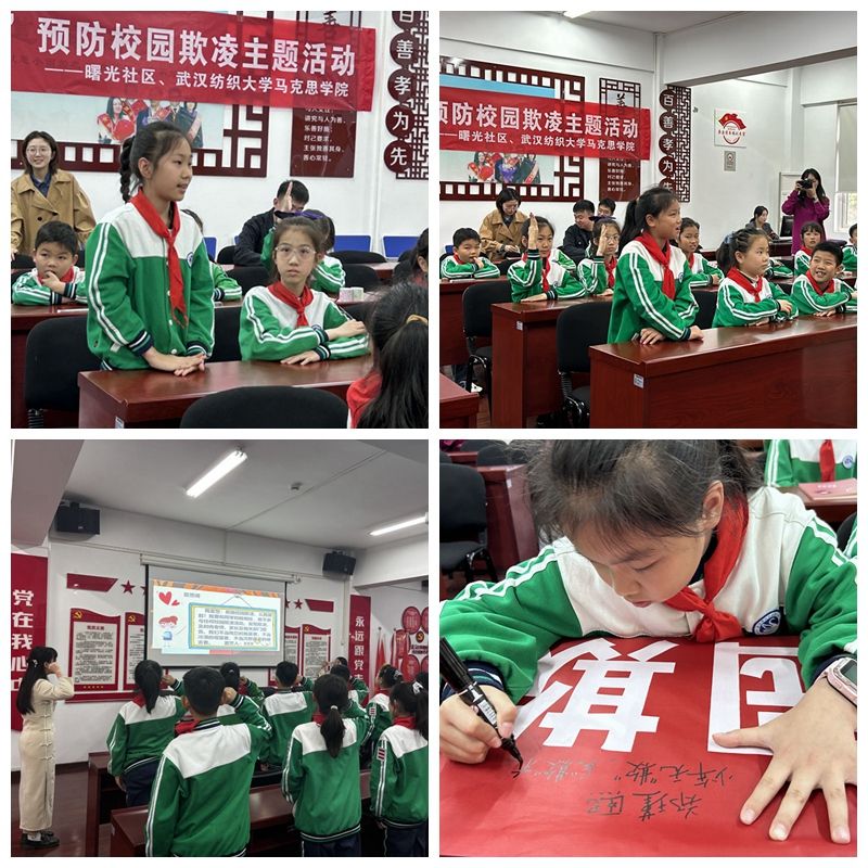 活动伊始,宣讲人通过“揉搓白纸”的方式来模仿霸凌行为,迅速将学生们带入到宣讲主题,向小学生们详细介绍了校园欺凌的定义、类型、危害以及预防措施。她们运用生动的案例和浅显易懂的语言,引导小学生们认识到校园霸凌的严重性,并教会他们如何拒绝和防范校园霸凌。