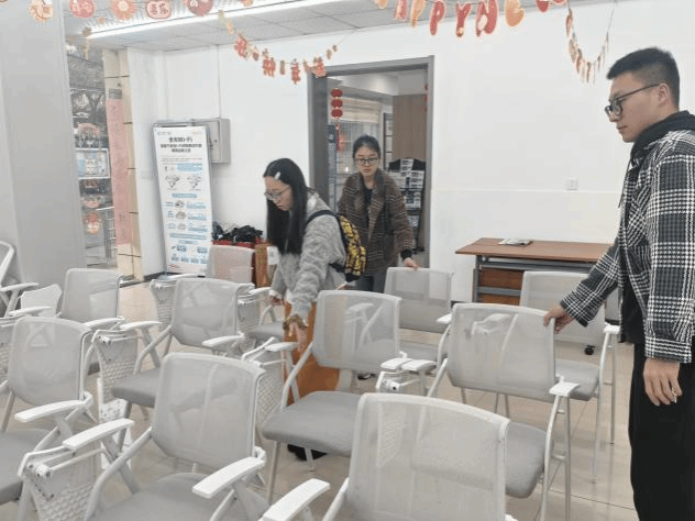 摄影课开始之前,志愿者们按照社区工作人员的需求,认真对教室进行了布置,依照人数要求合理摆放桌椅,并贴心为腰不好的学员换上了更柔软的椅子。为确保课堂效果,志愿者们细心调整了音响设备。摄影课正式开始之后,志愿者们帮助摄影课老师调节场地灯光。在大家共同的努力下,这节摄影课最终圆满结束。