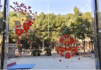 活动当天,“初心”实践团的志愿者贴窗花、拉花旗,大家齐心协力、互帮互助。在社区工作人员的引导和帮助下,经过志愿者的努力,社区党员群众服务中心的大厅焕发生机、喜气洋洋。