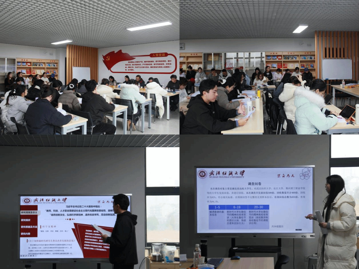 答辩环节,同学们逐一进行汇报,分别从研究背景、意义、方法、内容、路径以及创新点等多个方面详细阐述了自己的论文内容,展示了他们对思政领域相关问题的深入思考和探究。选题围绕新时代思政方面的研究热点问题,涵盖科学家精神、感恩教育、斗争精神、奉献精神、大别山精神等多个角度,体现了同学们敏锐的学术洞察力。答辩评委们认真聆听每位同学的汇报,指出了论文中的亮点,并根据存在的不足给出修改意见。评委们特别强调了论文主题要明确、结构要清晰、内容与题目要高度契合,同时提醒同学们要恰当运用研究方法,聚焦核心观点,重视理论基础,确保整篇文章的连贯性和逻辑性。此外,针对摘要撰写、参考文献引用以及调查问卷等方面的共性问题,评委们也进行了详尽的讲解和指导,鼓励同学们加强理论研究,将研究成果真正回归到思想政治教育的实践中去。汇报完毕后,杨豹对同学们的表现进行总结,指出此次预答辩会议目的是帮助同学们在正式答辩前发现并修正论文中的不足,希望大家能够认真对待评委们的意见,避免低级错误的出现,以更好地应对正式答辩。